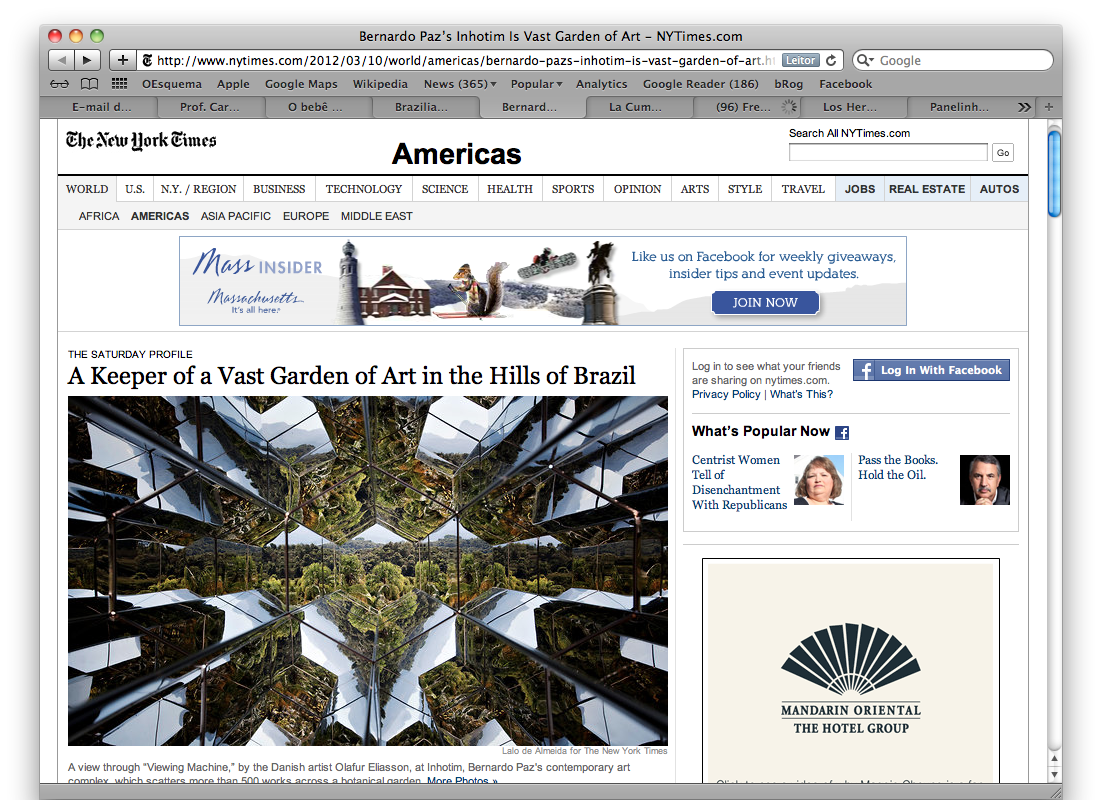 “Before Inhotim, our men worked in the mines or moved to São Paulo to make money,” said Profira de Souza, 74, a resident of the village of Marinhos whose son and grandson work at Inhotim. “God lowered Bernardo Paz down to us, and I pray he doesn’t take him back too soon.”
