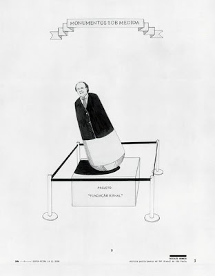 É um artista argentino que mora em São Paulo e tem seu trabalho representado pela Galeria Vermelho. Acompanho e aprecio seus trabalhos com grande entusiasmo e o coloco entre os artistas mais interesssantes da nova geração. Nicollas participou da última Bienal de São Paulo com uma série de desenhos publicados no jornal do evento. Esses 3 desenhos abaixo, com tom mais críticos à própria Fundação Bienal e ao projeto da curadoria, foram censurados. Achei eles lá no Forum Permanente do MINC.