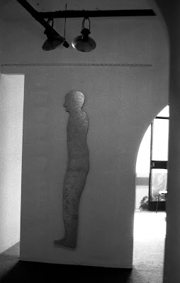 Em 1993 eu Tatiana Grinberg fizemos exposições individuais simultaneas no Museu Guido Viaro, em Curitiba. Essa semana Tati me mandou as fotos abaixo por email. São trabalhos que fiz entre 2001 e 2003 no ateliê da rua Taylor que dividia com Angelo Venosa e Jose Bechara. Esculturas com chapa galvanizada, um caixão de madeira, um pequeno trabalho de plástico na parede e um auto-retrato em perfil também em chapa galvanizada.